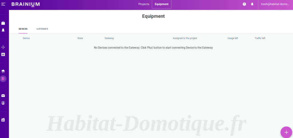 Maintenant, cliquez sur l’icône du projet puis cliquer sur l’icône « + » dans le coin inférieur droit pour assigner l’appareil à votre projet.